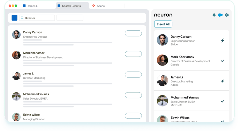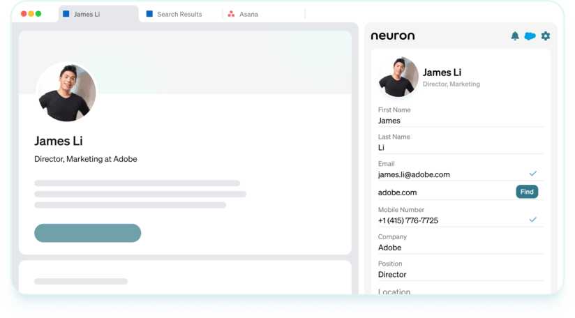 Neuron gives you the right contact data, fully integrates with your CRM, and connects with your existing outbound sales stack